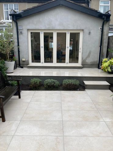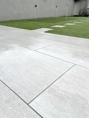Porcelain is ideally suited to use outdoors as it is extremely strong, hard-wearing and won't crack in very cold weather. Alternative to stone paving slabs